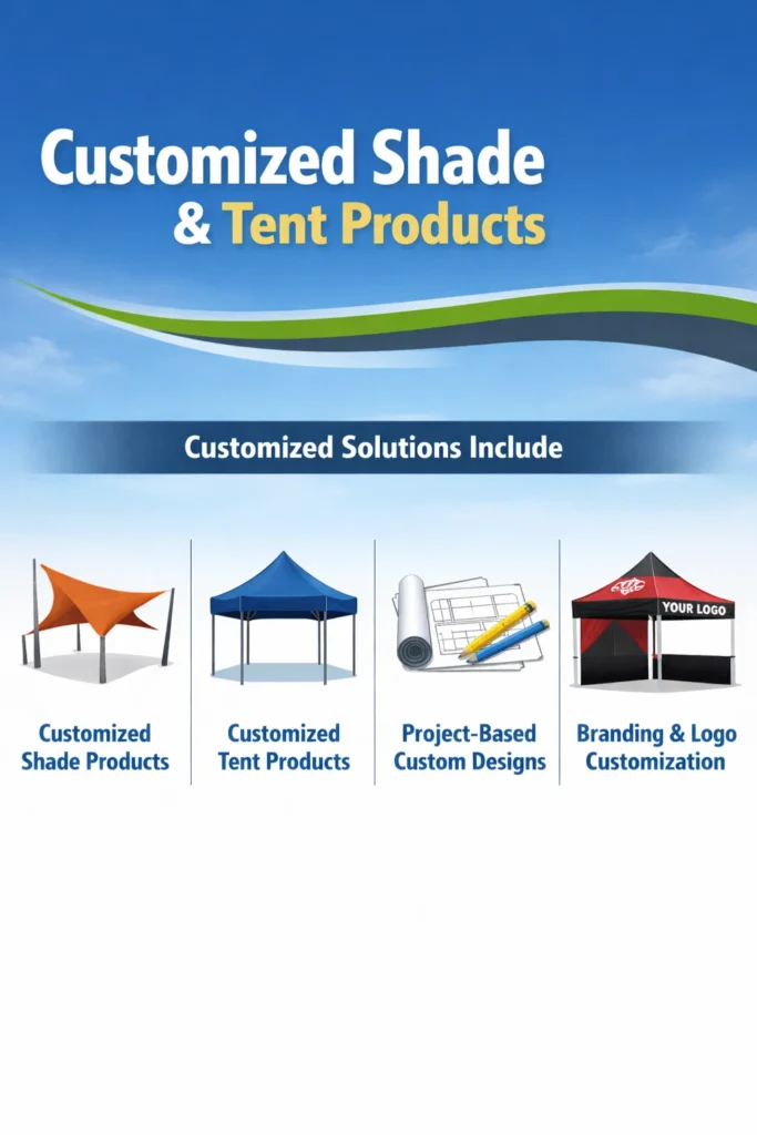 Yes, customized shade and tent products are available for projects, events, and commercial use.