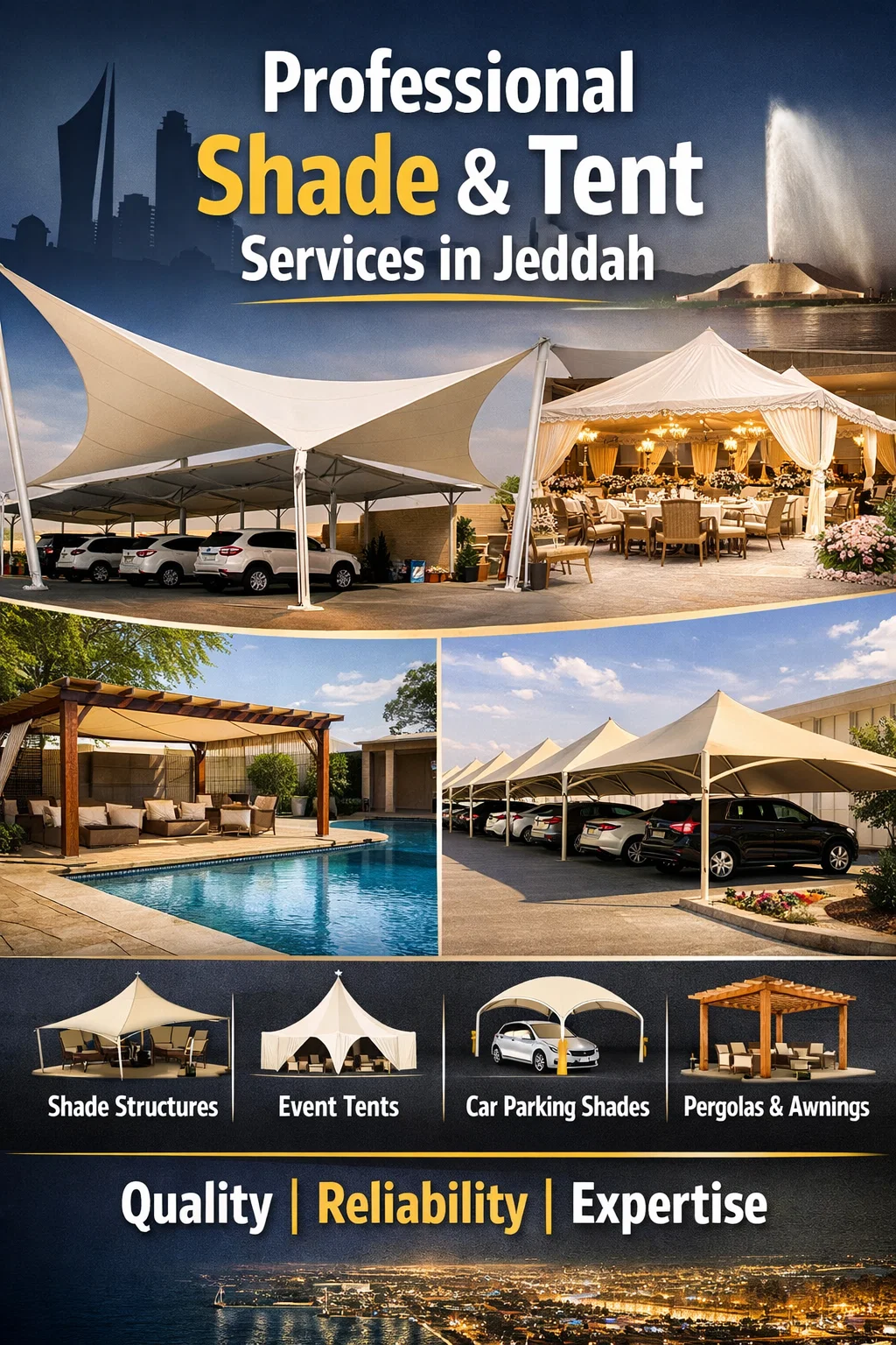 Our expert team provides shade, pergola, umbrella, and tent installation in Jeddah, ensuring safety, durability, and long-term performance for villas, parking areas, shops, and commercial buildings.